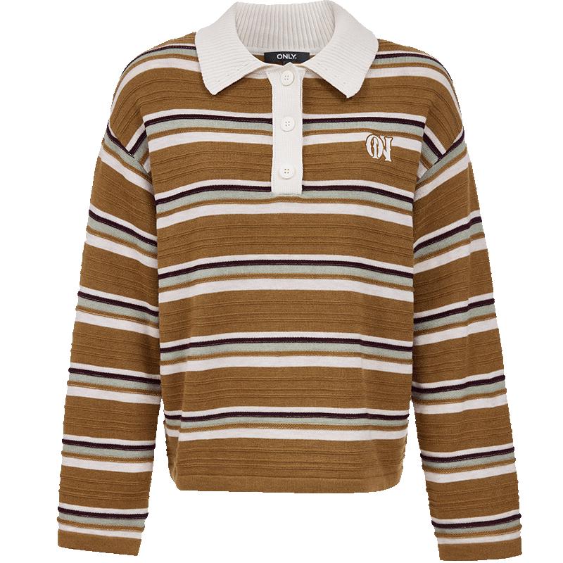 Only Women's 2025 Autumn College Style Polo Collar Striped Loose Knit Sweater