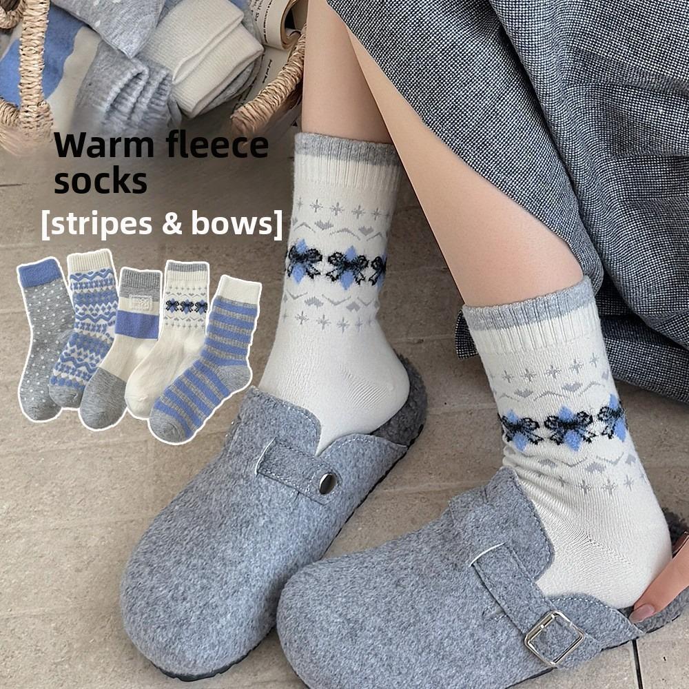Female Autumn and Winter Thickened Warm Stripe Bow Everything In The Tube Pile Socks