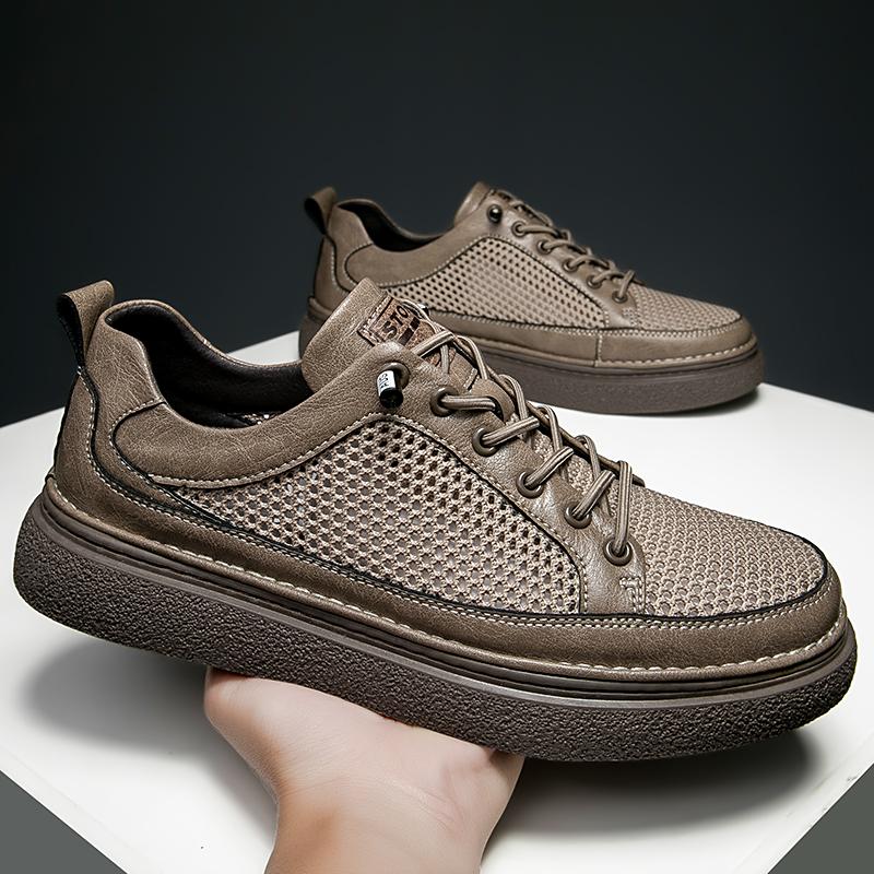 Summer New Men's Shoes High Quality Genuine Leather+Mesh Casual Shoes Comfortable Luxury Brand Formal Shoes Skateboard Sneakers