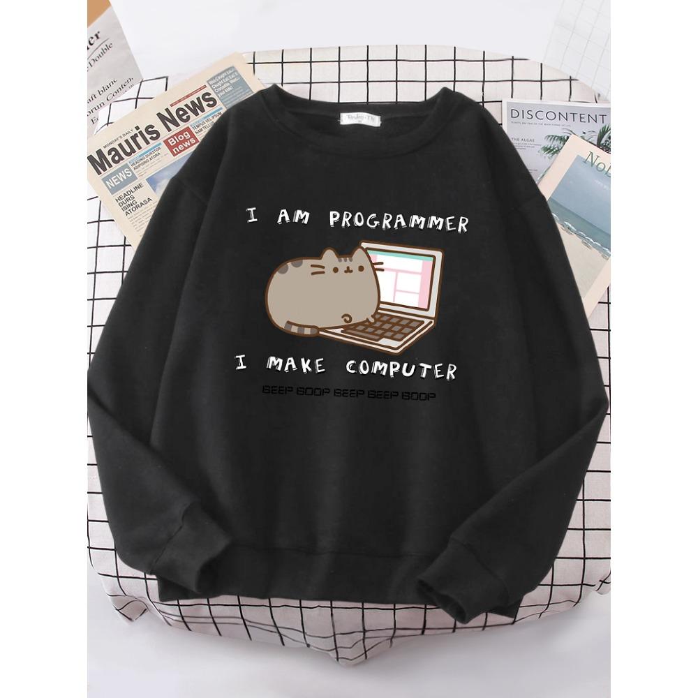 I Am Programmer I Make Computer Funny Cat Women Hoody Korean Fashion Sweatshirt Street Casual Clothes Hipster Loose Sportswear