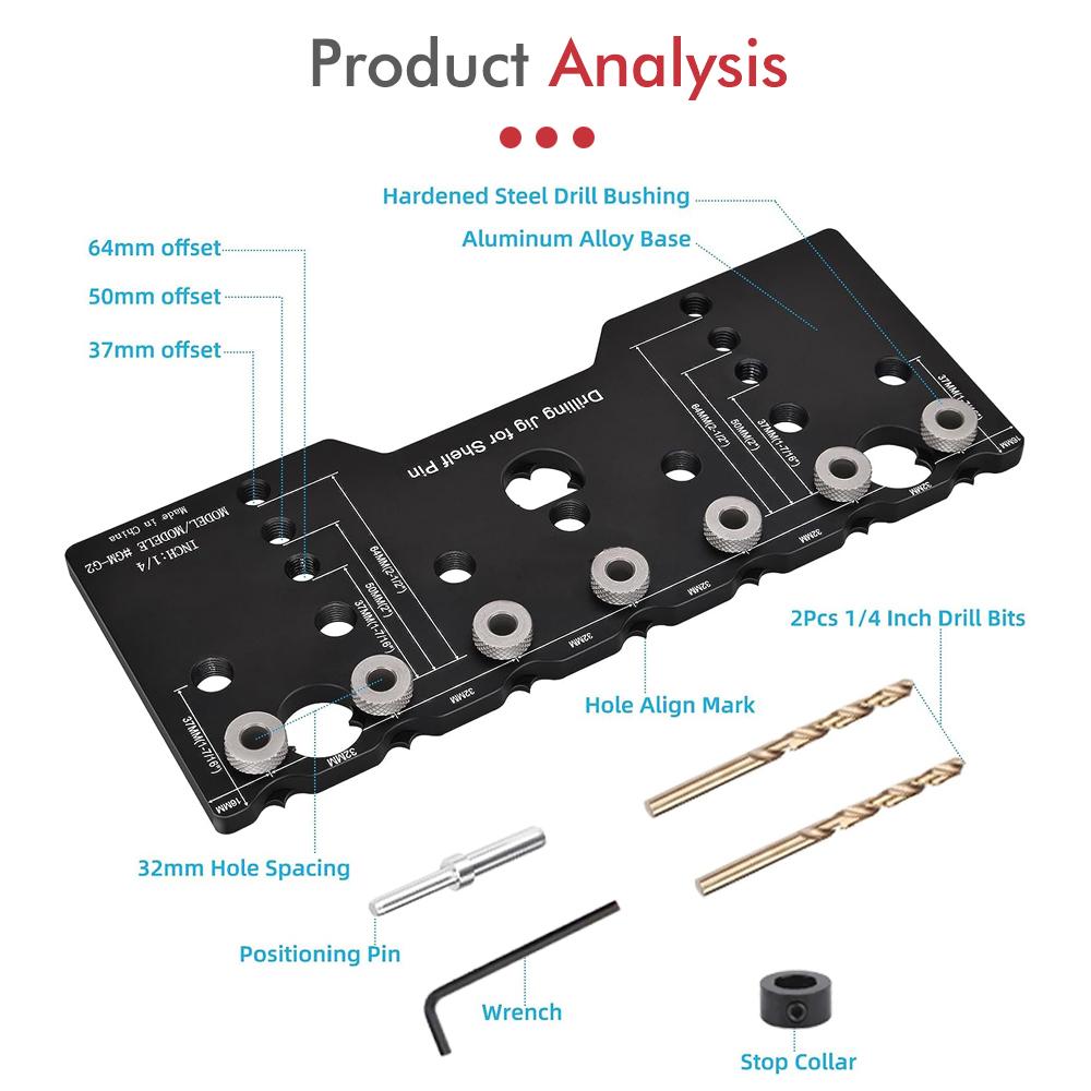 Red/black Shelf Pin Jig 1/4 Inch Aluminum Alloy Shelf Pin Drilling Jig Drill Guide for Straight Holes Shelf Pin Drilling Jig
