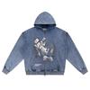 DTG Print Knitted Denim Zip-Up Hoodie Magician Brother Print Zipper Hoodies