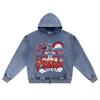 DTG Print Knitted Denim Zip-Up Hoodie Japan Samurai Brother Print Zipper Hoodies