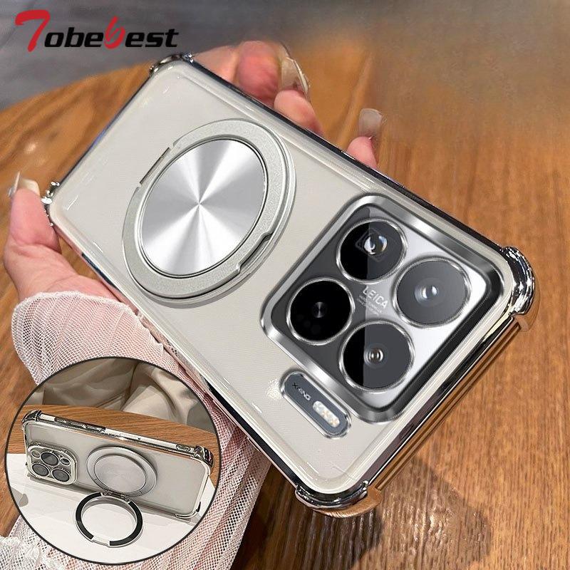 360 Degree Rotating Magnetic Bracket Phone Case For Xiaomi 15T 15S 15 14 14T Pro Clear Shockproof Plating Cover