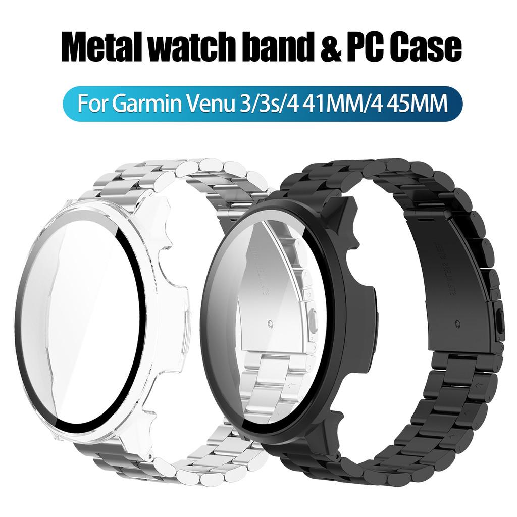 22mm Stainless Steel Metal Strap with PC Hard Case for Garmin Venu 4 45mm 18mm Watchband and Protection Case for Venu4 41mm