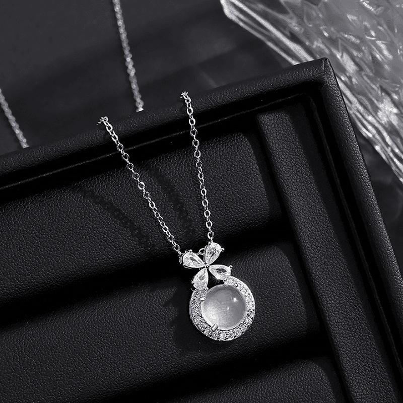 Literary White Chalcedony Colored Treasure Pendant, Light Luxury Bow Imitation Water Foam Jade, Give Girlfriend Necklace Gift