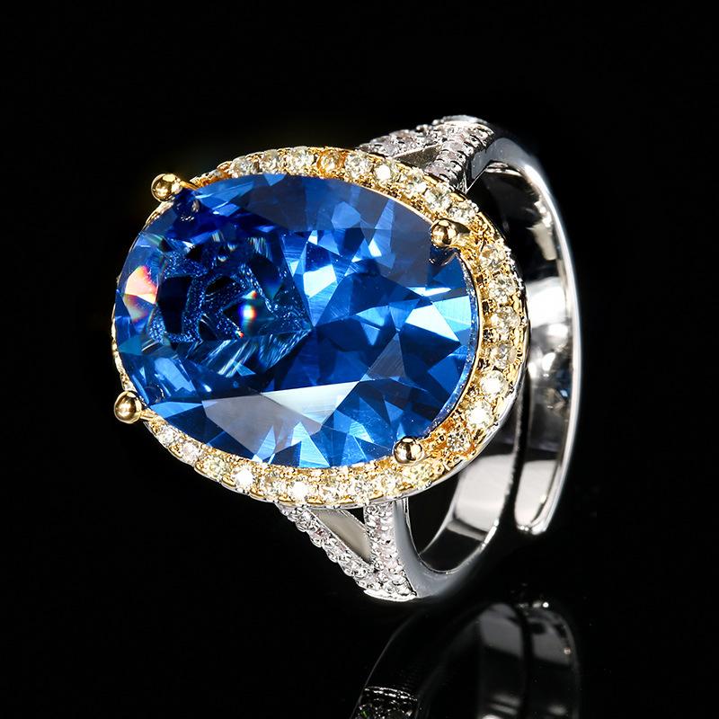 Jewelry Copper Bottom Gold-Plated Simulation Color Blue Spinel Ring 12 * 16