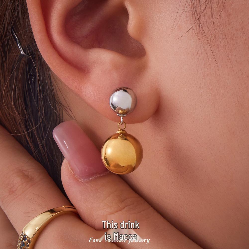 Oumaijia 18k Gold-Plated Stainless Steel Earrings with Hollow Design and Steel Ball Accents