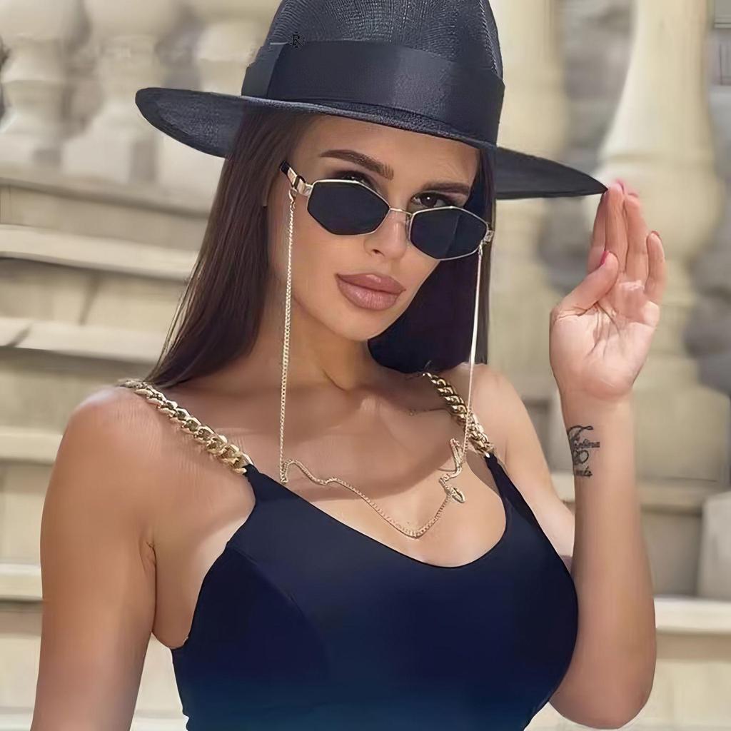 Retro Chain Decor Women's Polygonal Metal Sunglasses - European & American Street Style