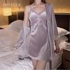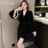 Winter Light Luxury Sexy Pajamas Girls Gold Velvet Suspender Lace Nightdress Robe Set Loungewear 7