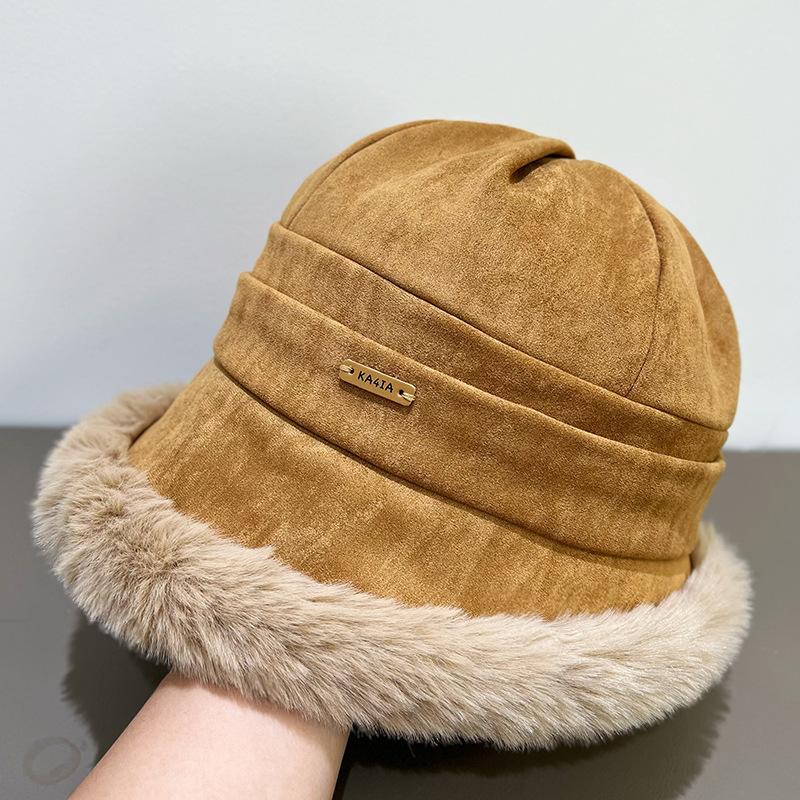 Hat Women's Winter New Plush Bucket Hat Thickened Warm Cotton Hat Lei Feng Hat Winter Plush Faux Fur Trim Winter Bucket Hat