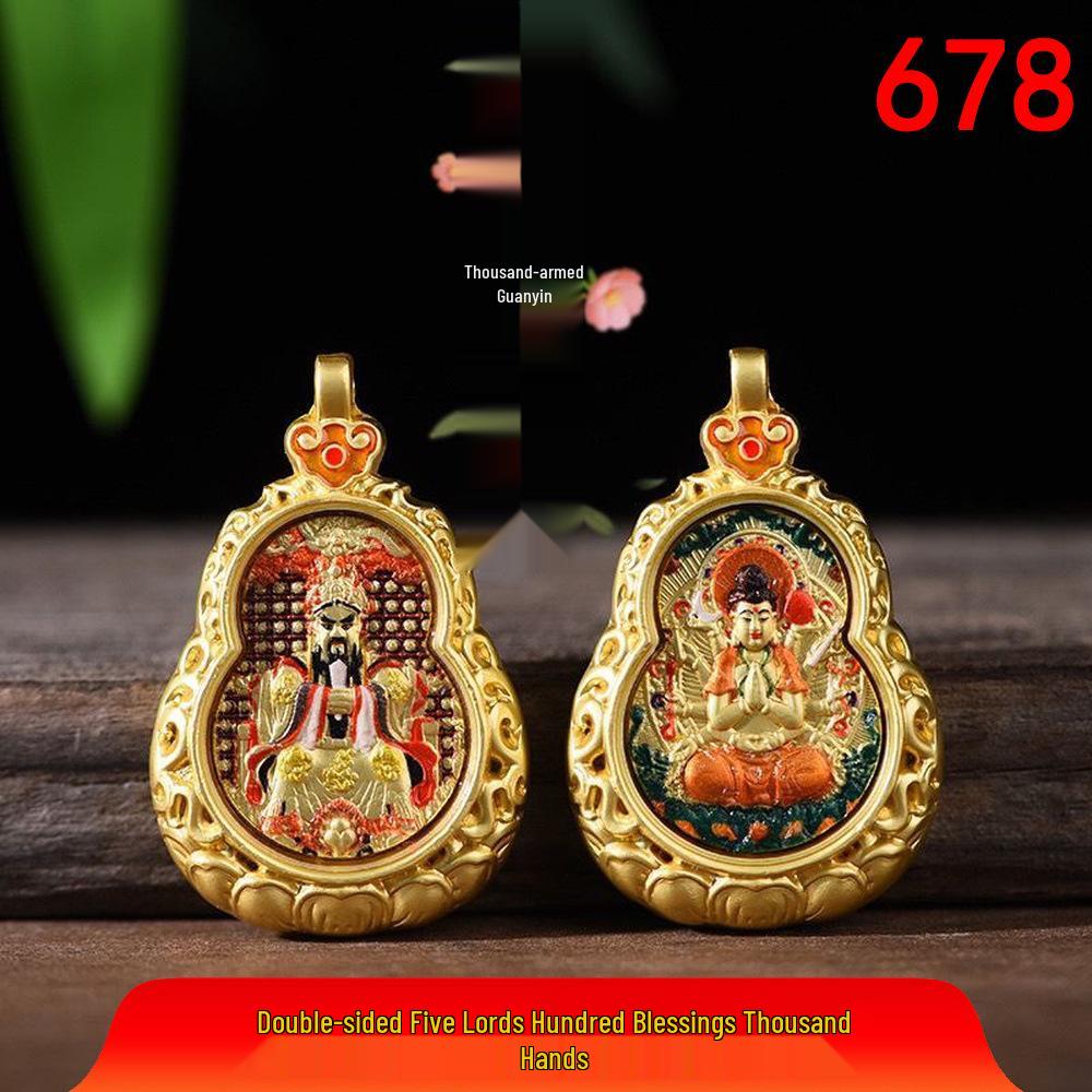 Shopkeeper's Favorite: Bestselling Mini Thangka Titanium Steel Gourd Pendant Necklace with Color-Preserving Material, Double-Sided Guardian Design.