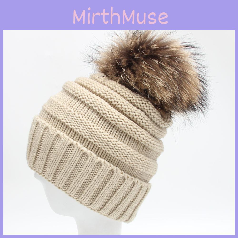 Women Knitted Stripe Hairball Hat Thickened Design Outdoors Keep Warm Gifts
