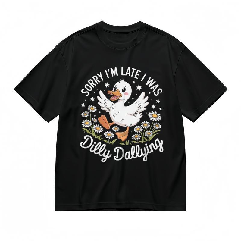 Women's Fashion Comfy Classic T-Shirt Smiling Duck Flower Design Dilly Dally Tee
