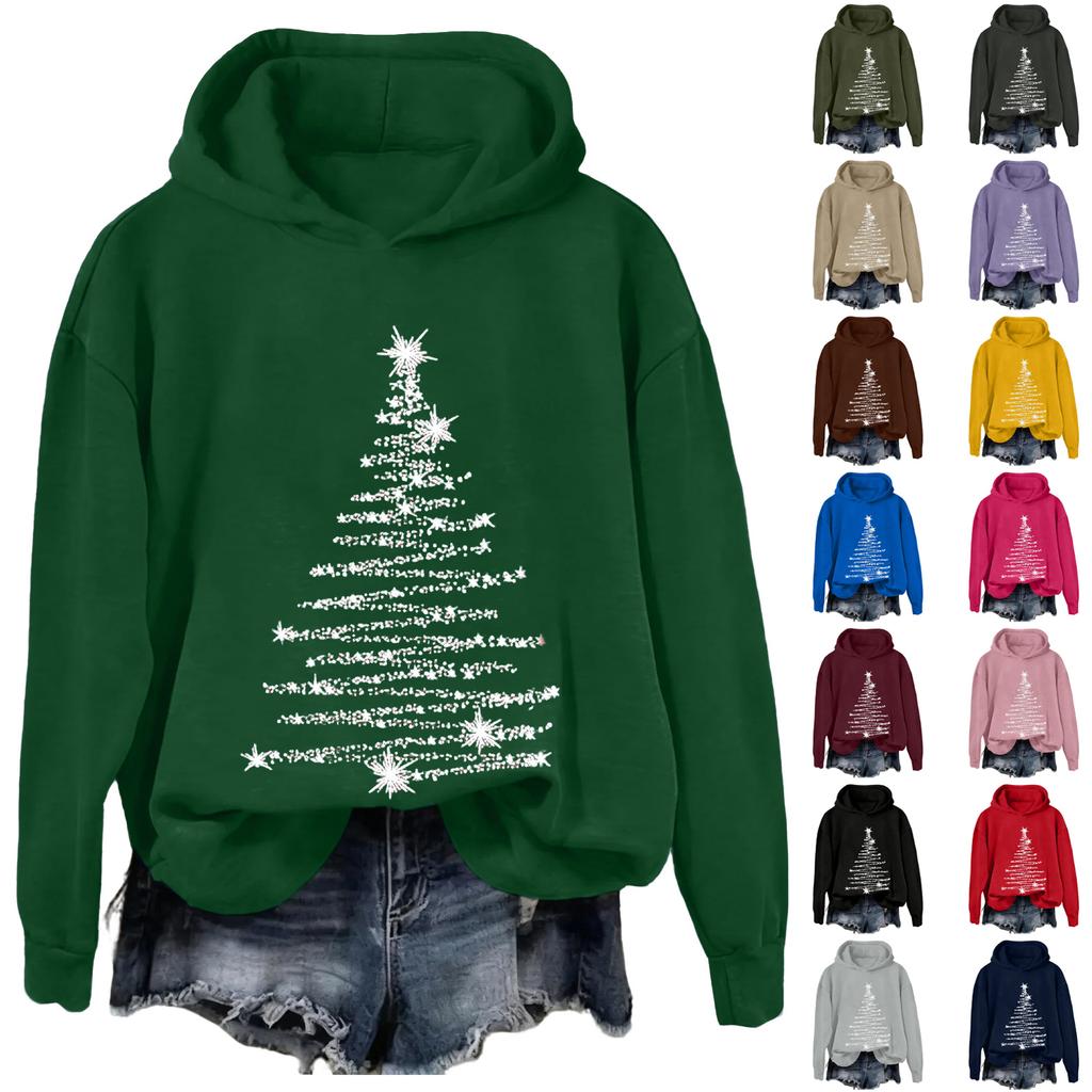 Ladies' Christmas Printed Casual Long Sleeved Round Neck Sports Hoodie Top