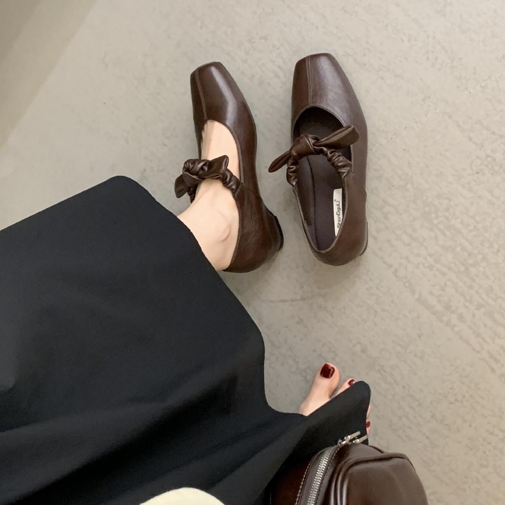 French Niche Bow Ballet Shoes Women's Versatile Square Head Light Mouth Low Heel Mary Jane Single Shoes