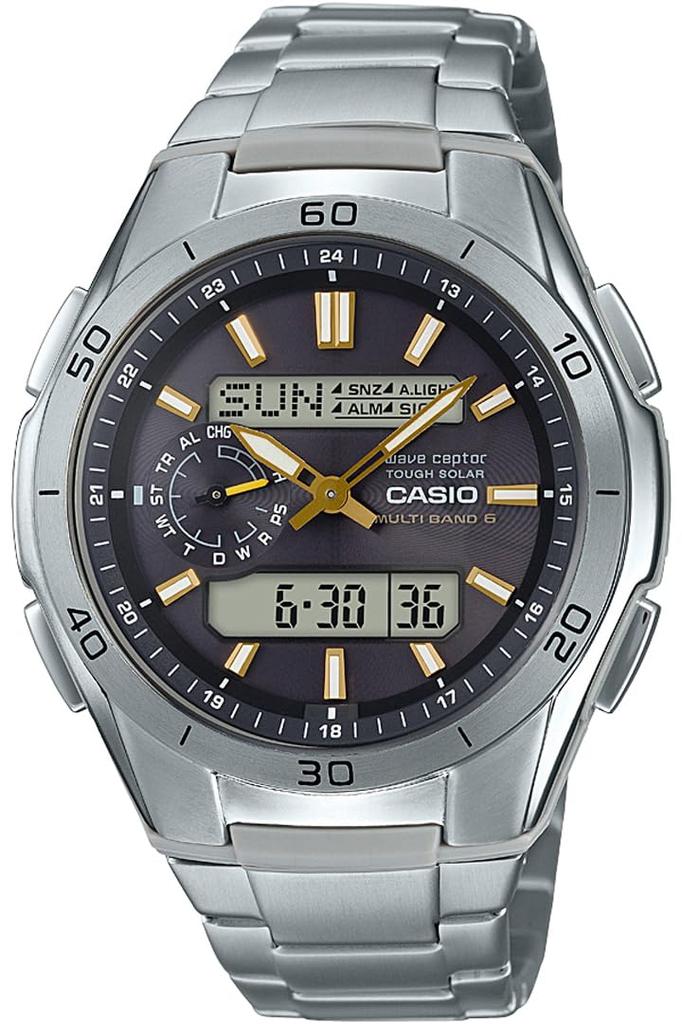 Introducing a Wave Ceptor model equipped with "Multiband 6," which receives standard radio waves from six stations around the world. Equipped with calendar, world time, and alarm functions, the WVAM640D displays them on the LCD at 6 o'clock. The WVA-M650TD clearly displays these functions on the upper and lower LCDs. A small hand at 9 o'clock indicates the current mode and assists operation. Furthermore, both series feature push-and-release bands, the length of which can be easily adjusted using the included tool. Introducing a highly practical Wave Ceptor. This is the WVA-M650TD model.