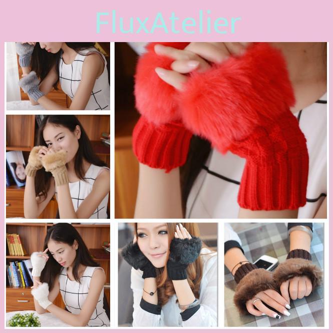 Plush Solid Color Knitted Half Finger Gloves Thickened Warmth Fashion Gifts