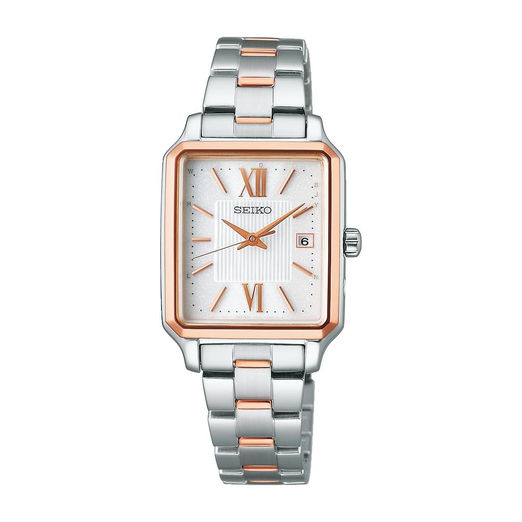 SEIKO SELECTION S Series Solar Square Watch Silver and Pink Gold Women's Radio-Controlled SWFH140,