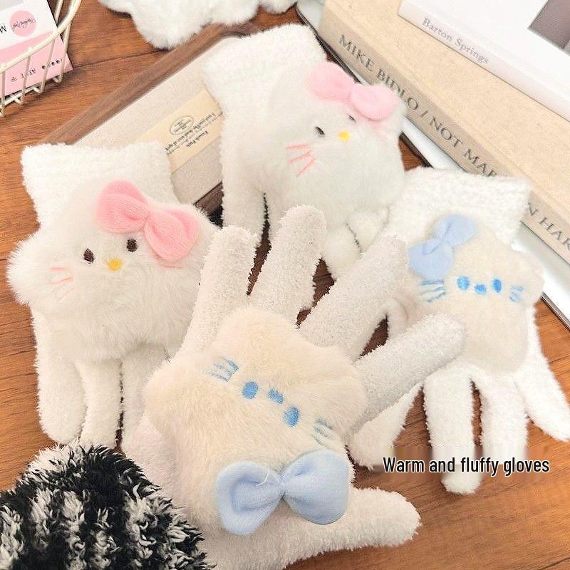 Cute Star Kitty Women's Winter Gloves - Plush, Warm, Cold-Proof