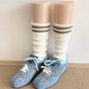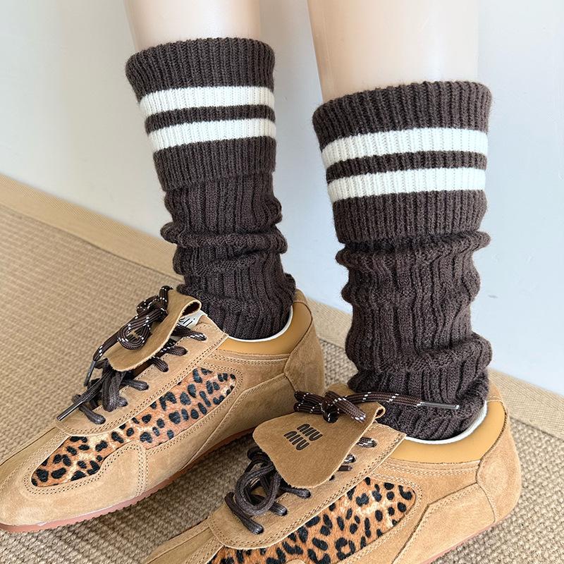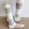 Women's Wool Mid-Calf Socks: Thickened Autumn/Winter Brown Slouch & Gray Stirrup Warmers