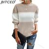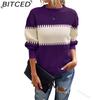BITCED Color-Block Striped Sweater with Lantern Sleeves Women's O-Neck Top In European Style