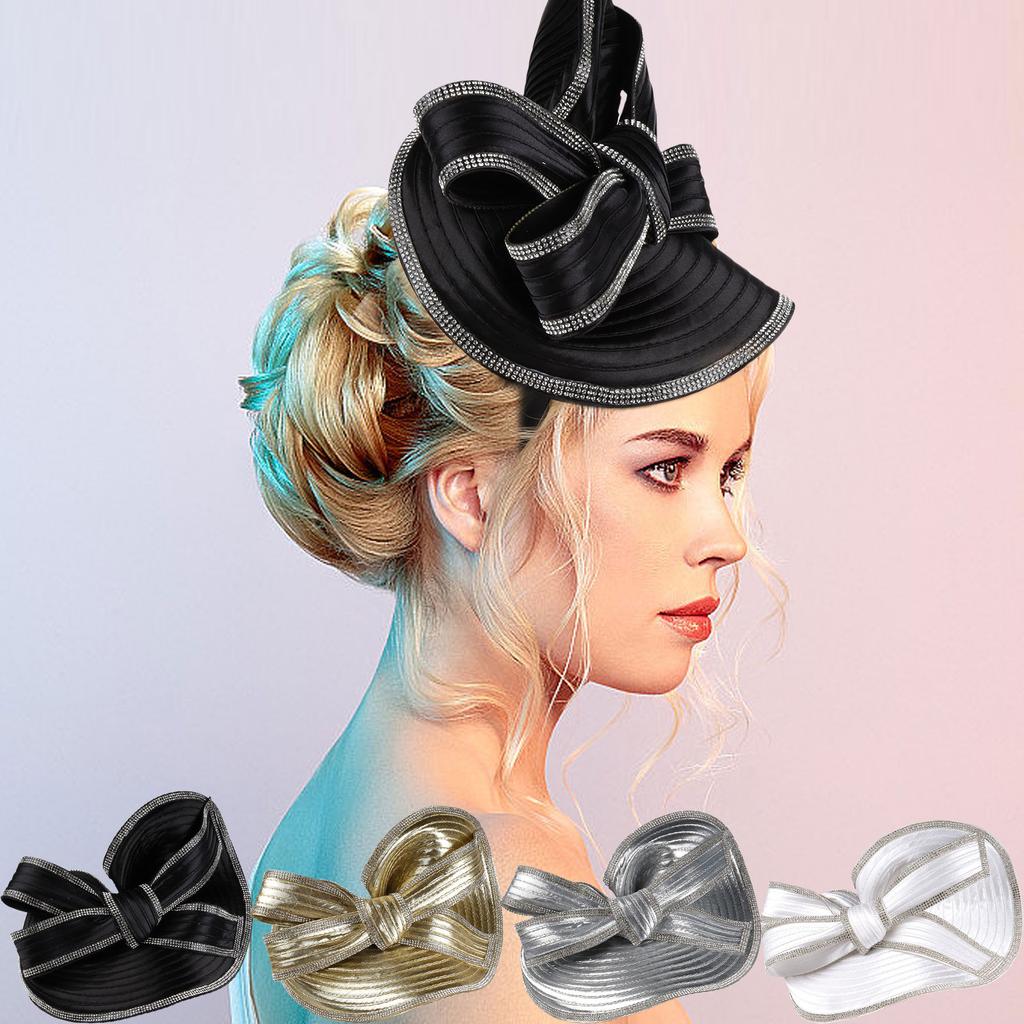 TeaParty Fascinator Hat Kentucky Derby Rhinestone Trim Hat Headband for Cocktail Big Bowknot Bowler Hat 1920s Church Hat