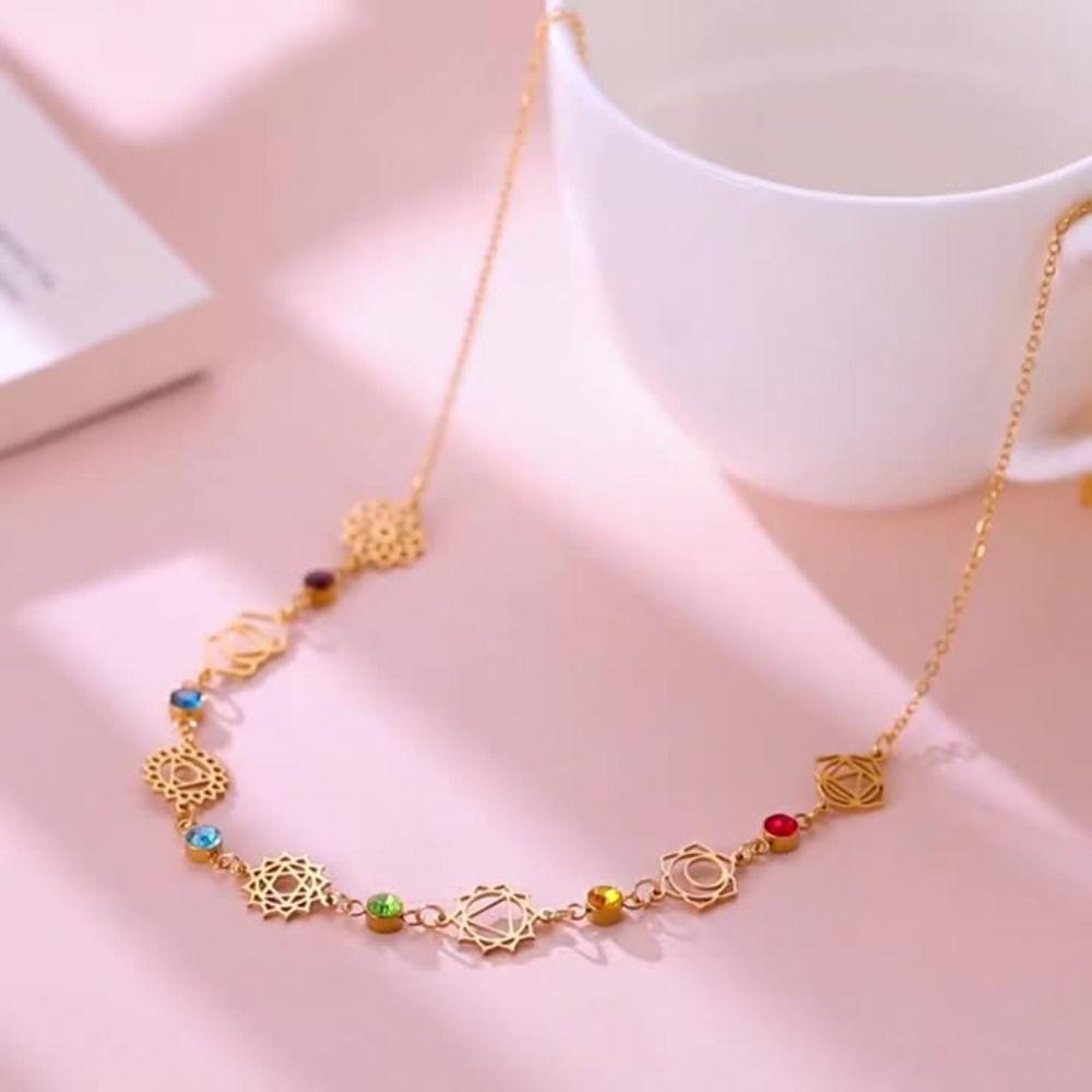 Gold Color Chakra Charm Choker Stainless Steel Energy Pendant Necklace Women Jewelry