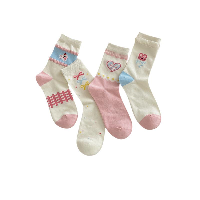 Pink Boneless Women's Mid-calf Socks, Thin and Cute Cartoon Socks for Girls In Spring and Summer