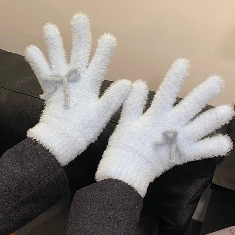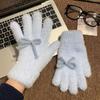 Cute Sweet Bow Plush Gloves Cold-Proof Gloves Student Winter Warm Five-Finger Gloves Women Fashion Accessories Christmas Gifts