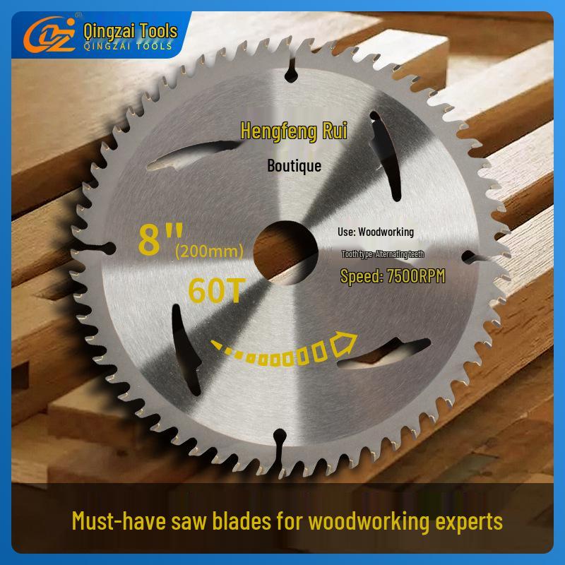 8-Inch Alloy Circular Saw Blade, 60 or 80 Teeth, Dust-Free for Wood Cutting