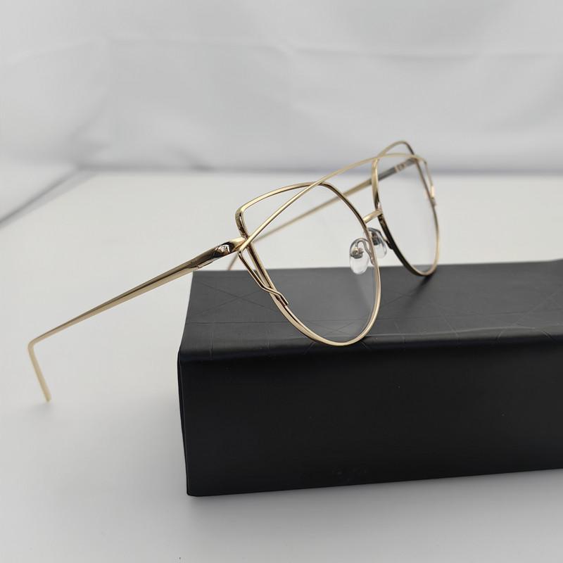 New Cat Eye Eyeglasses Women Vintage Oversized Metal Glasses Frame Men Anti Blue Light Glasses Gold Optical Spectacle