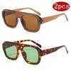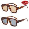 2Pcs Trendy Flat Top Square Frame Sunglasses Women Vintage Polygon Design Sun Glasses Men Leopard Stylish Pilot Shades Uv400
