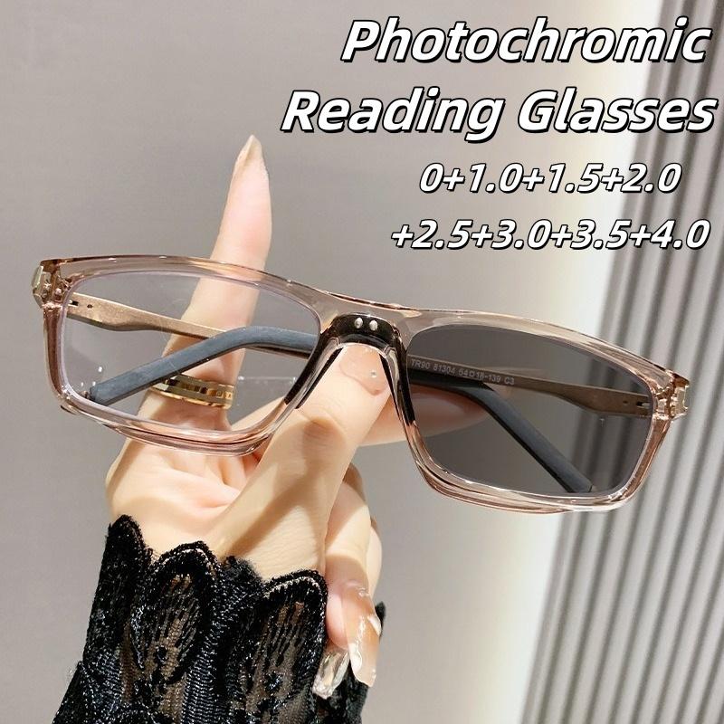 Photochromic Square Reading Glasses For Women Fashion Retro Eyewear Trendy Square Anti Blue Light Presbyopia Glasses 0 To +4.0