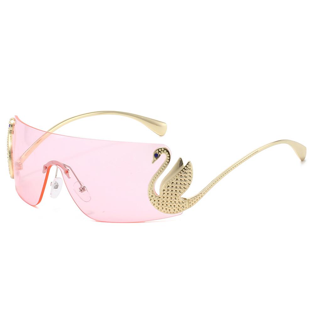 Vintage Rimless Swan Sunglasses Women For Men Luxury Brand Designer Sun Glasses Punk Popular Pink Shade Uv400