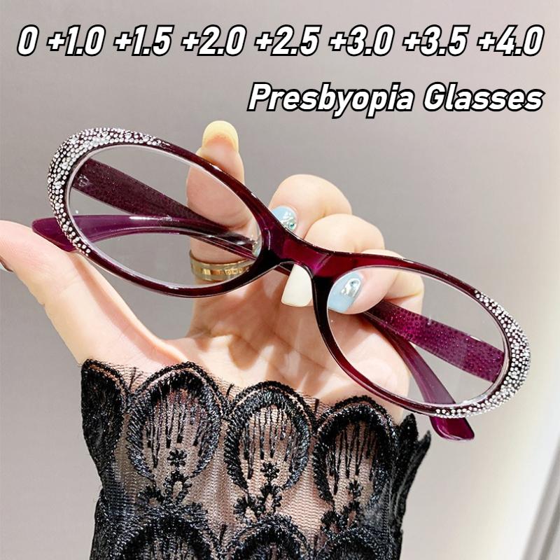 Luxury Round Frame Reading Glasses Fashion Diamond Frame Presbyopia For Women Hd Lens Ultralight Far Sight Eyeglasses 0+1.0+4.0