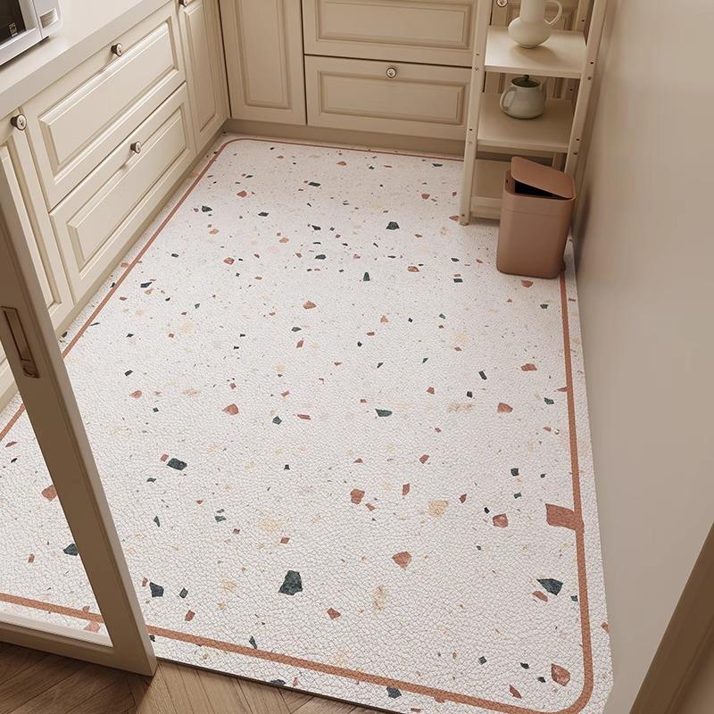Kitchen Carpet Waterproof Oilproof Non-slip Floor Mat Imitation Tile Texture PVC Leather Rugs Household Large Size Foot Mats
