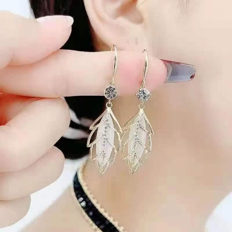 Trendy Cat's Eye Stone Leaf Dangle Earrings - Versatile, Simple Fashion Christmas Gift for Women