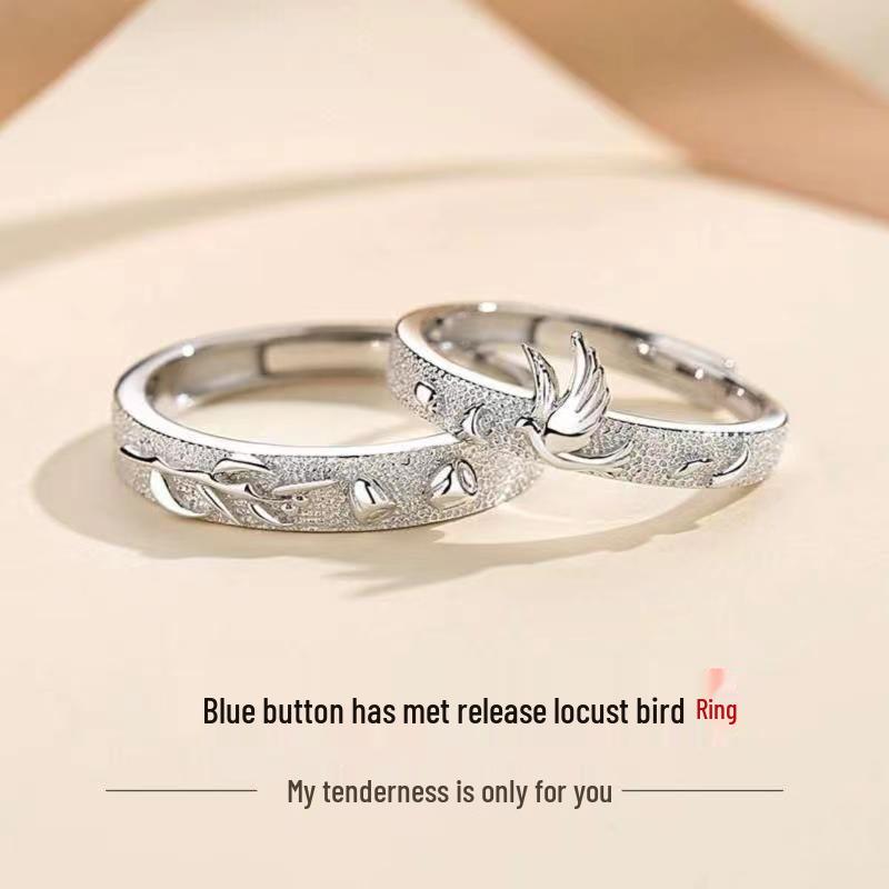 New Blue Eucalyptus & Bird Couple Rings for Women & Men: Niche Design, Light Luxury Wedding Bands, Perfect Christmas Gift