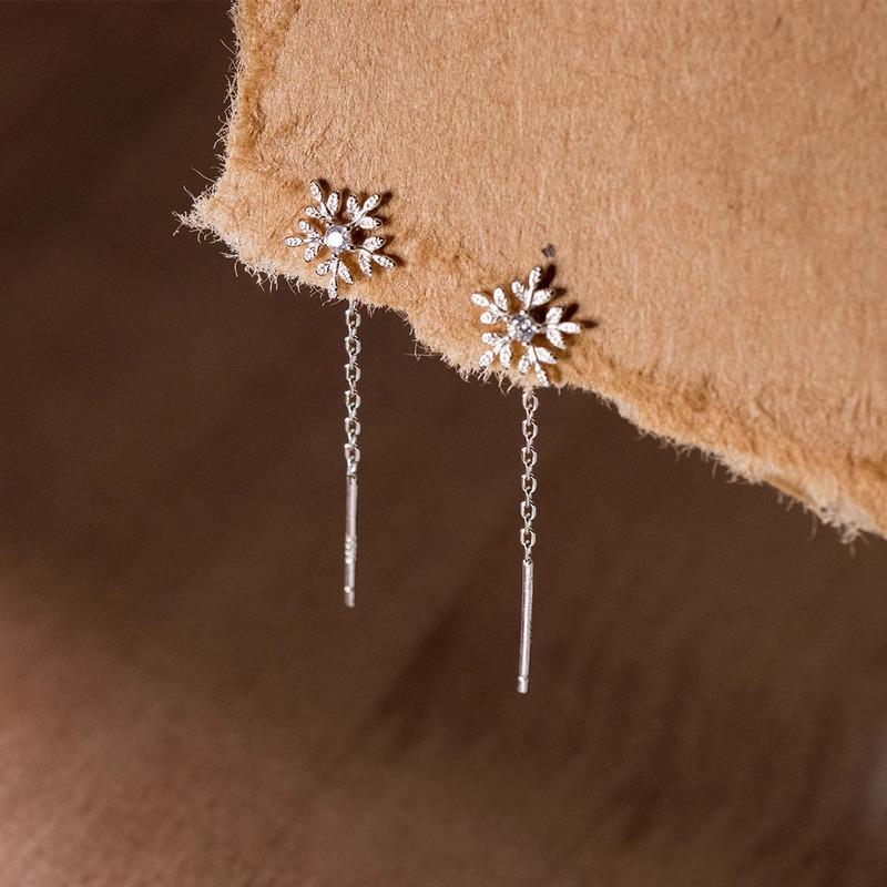 Elegant Zircon Snowflake Tassel Earrings – Light Luxury Christmas Gift for Her