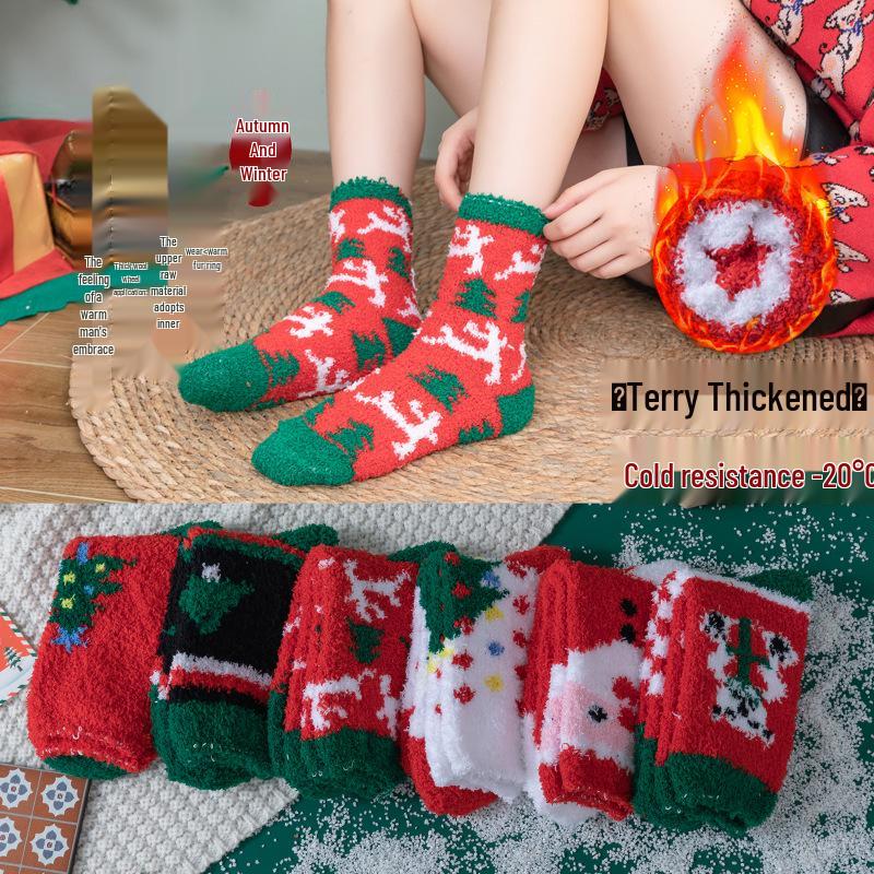 Women's Non-Slip Coral Fleece Christmas Socks, Mid-Tube, Thick and Plush, Perfect for Autumn and Winter, Ideal As Cozy Sleep Socks.