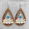Teardrop Santa Claus Bell Car Red Ornaments: Wooden Christmas Earrings