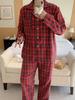 Korean Spring & Autumn Plaid Lace Peter Pan Collar Pajamas - Loose Couple Long Sleeve Homewear Set