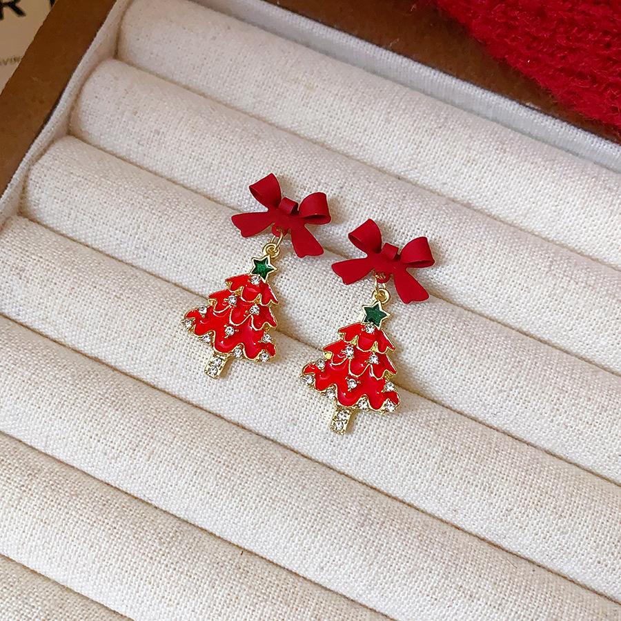 Silver Rhinestone Bow Christmas Tree Earrings: High-End, Versatile Studs