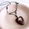 Leather Wood Beaded Love Knot Pendant Necklace Autumn and Winter Vintage Maillard Sweater Chain Personalized Niche Items