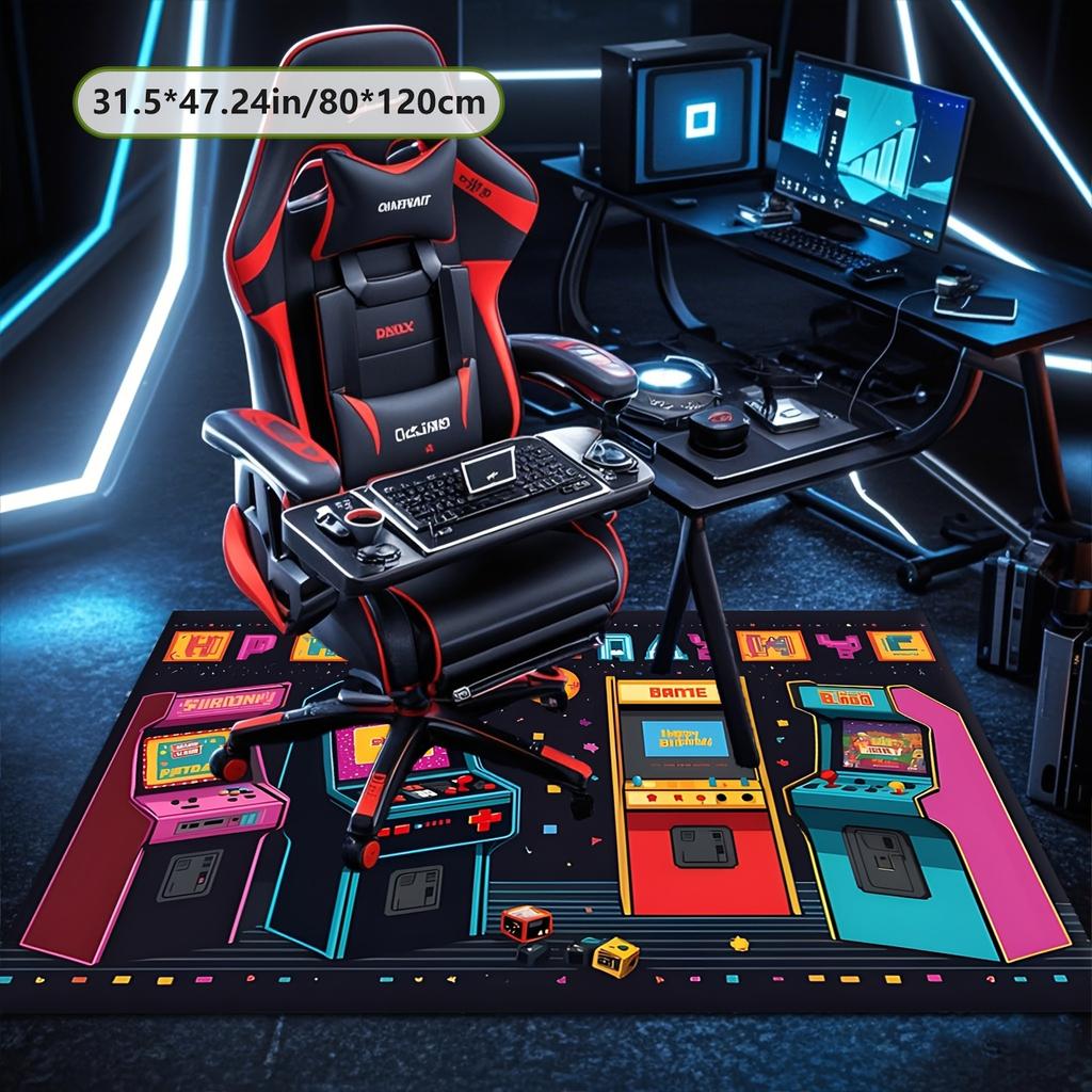 Vibrant Arcade Game Pattern Area Mat Polyester Fiber Non Slip Backing Machine Washable Living Room Bedroom Office
