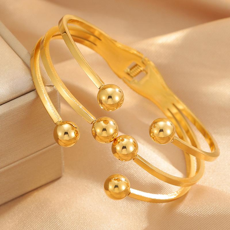 Golden Three Layer Round Bead Bracelet Stainless Steel Bracelet Cross Shaped Round Beads Do Not Fade Titanium Steel Bracelet