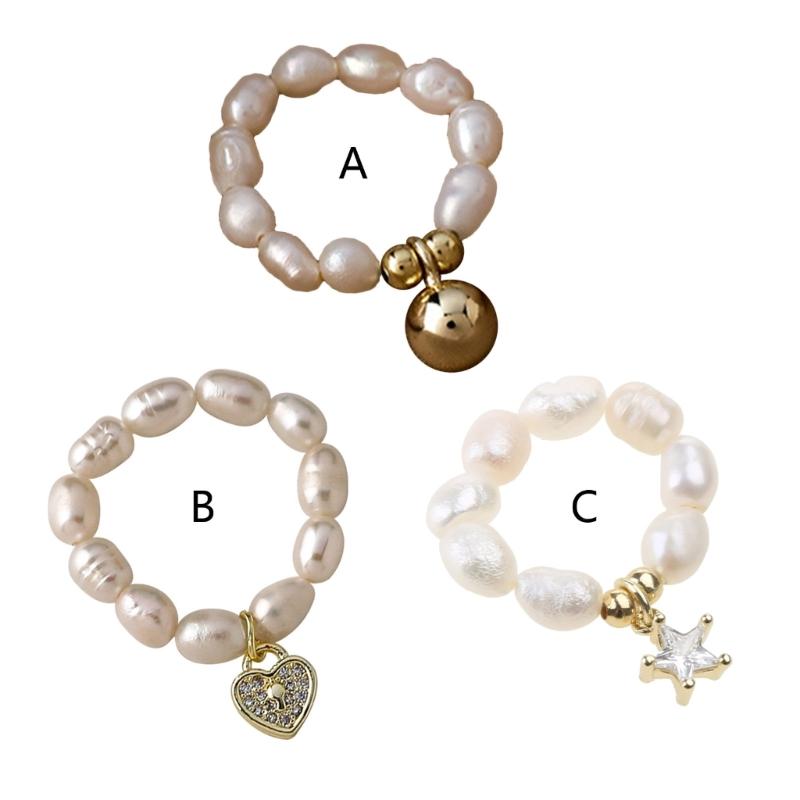 Multi-Beaded Heart Star Pearl Rings Natural Freshwater Pearl Geometric Rings for Women Minimalist Stacked Party Rings