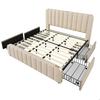 Upholstered Bed Double Upholstered Headboard with Golden Trim, USB Type-C Charging Function 180x200cm, Beige Linen Material with 4 Drawers, Load