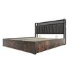 Upholstered Bed Metal Bed LED App-Control Double Bed with Charging USB Charging Function Headboard And LED Light, Metal Bed 140x200cm Wooden Slatted
